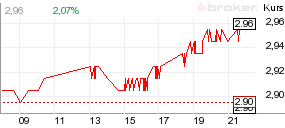 | KURS VORTAG | 2,90 EUR | JAHRESTIEF 250 TAGE | 2,43 EUR | ||||||||||||||