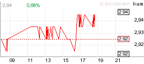 | KURS VORTAG | 2,93 EUR | JAHRESTIEF 250 TAGE | 2,43 EUR | ||||||||||||||