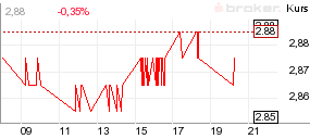 | TAGESHOCH | 2,89 EUR | JAHRESTIEF SEIT 1.1. | 2,43 EUR | ||||||||||||||