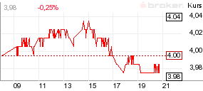 | KURS VORTAG | 4,06 EUR | JAHRESTIEF 250 TAGE | 3,64 EUR | ||||||||||||||