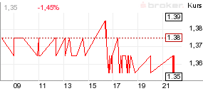 | KURS VORTAG | 1,42 EUR | JAHRESTIEF 250 TAGE | 1,06 EUR | ||||||||||||||