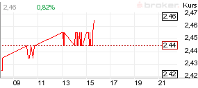 | KURS VORTAG | 2,45 EUR | JAHRESTIEF 250 TAGE | 1,93 EUR | ||||||||||||||