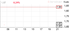 | KURS VORTAG | 1,78 EUR | JAHRESTIEF 250 TAGE | 1,47 EUR | ||||||||||||||