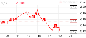 | KURS VORTAG | 2,24 EUR | JAHRESTIEF 250 TAGE | 1,62 EUR | ||||||||||||||